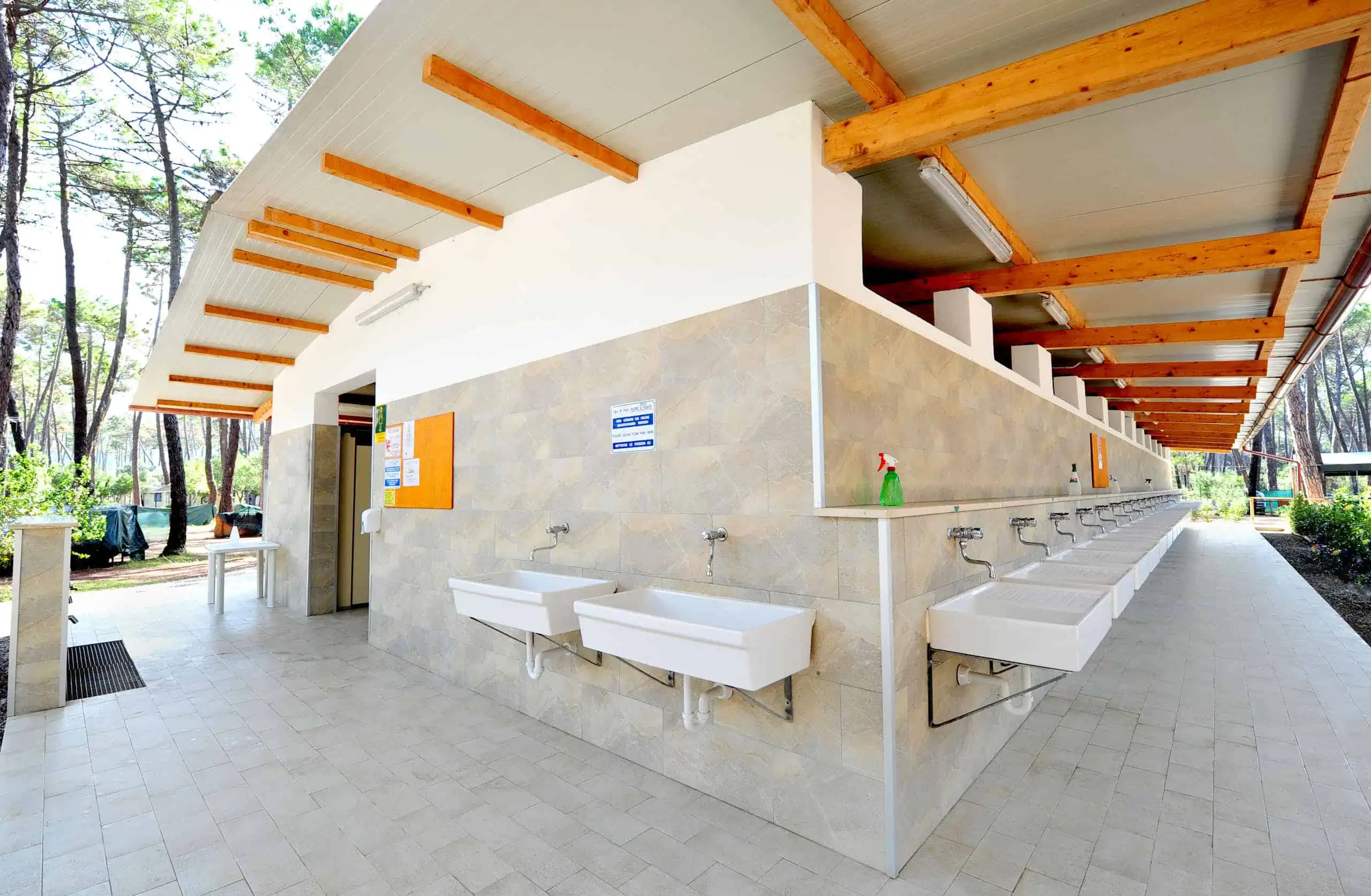 Sono presenti 9 gruppi di servizi igienici (isole) funzionali e con docce dotate di acqua calda senza uso di gettoni.